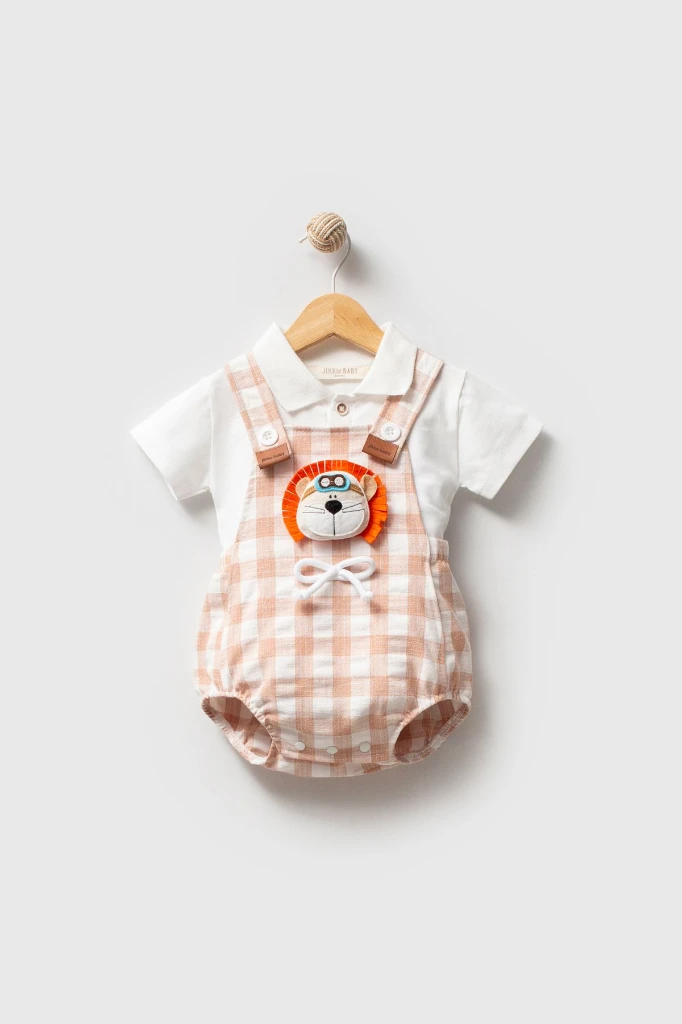 - Aslan figürleriyle süslenmiş ekose deseni, şık ve eğlenceli bir görünüm sunar. - Dokuma kumaş yapısı sayesinde dayanıklılığı artırılmış ve uzun süreli kullanım imkanı sağlanmıştır. - Türkiye'de üretilmiş olup yerel malzemelerle kalite standartlarına uygun üretim gerçekleştirilmiştir. - Bebeklerin rahat hareket edebilmesi için özel olarak tasarlanmış salopet kalıbı ile konforlu bir giyim deneyimi yaşatır. - Standart boy ölçüsüyle her bebek için ideal uyumu garanti ederken, kısa kol tasarımı mevsim geçişlerinde de tercih edilebilirliği arttırır. - Lastikli paça detayı pratik kullanım sağlayarak bebeğinizin ayakkabısının kaymasını önler. - %100 pamuklu materyali cildi tahriş etmeden yumuşak bir dokunuş sunarken nefes alabilir yapıda olmasıyla gün boyu ferahlık hissi verir. - İki parçadan oluşan set içeriği; hem üst hem de alt parça olarak tam bir kombin seçeneği sunarak gardırobunuzdaki esnekliği arttırır. - Polo yaka tasarımına sahip olan bu takım, resmiyetten uzaklaşmadan stil sahibi görünmenizi sağlar.