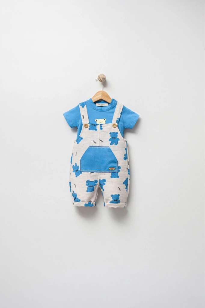 Bebeklerin rahatlığı düşünülerek tasarlanmış, yumuşak dokulu %100 pamuklu materyalden üretilmiş salopet takım.; Uzun kollu ve bisiklet yakalı tasarımıyla bebeğinizin hareket özgürlüğünü kısıtlamazken şık görünmesini sağlar.; Baskılı deseniyle sevimli ayıcık figürleri, bebeğinizin ilgisini çeker ve onları giydirirken eğlenceli anlar sunar.; Standart boy ve uzun paça kesimi ile her bebek için uygun bir uyum sağlar; çift olarak gelen bu setle bebeğiniz hem sıcak tutar hem de konforlu bir kullanım sunar.; Salopet formundaki bu takım, kolay giyilip çıkarılabilir yapısıyla pratiklik sağlar; annelerin hayatını da kolaylaştırır.;